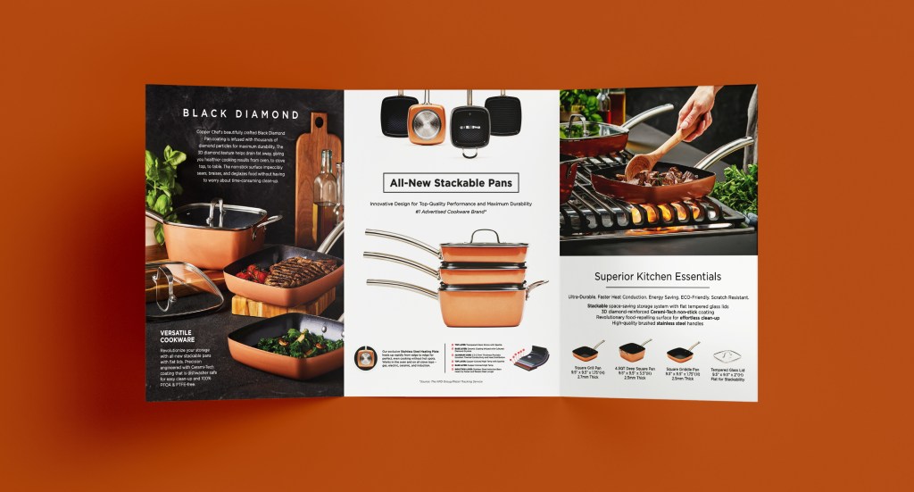 Oversaw the Copper Chef refresh to update pre-existing cookware and bakeware packaging, marketing materials, and brand standards guide. Lead the creative strategy for their signature Diamond, Black Diamond, and Titan series.