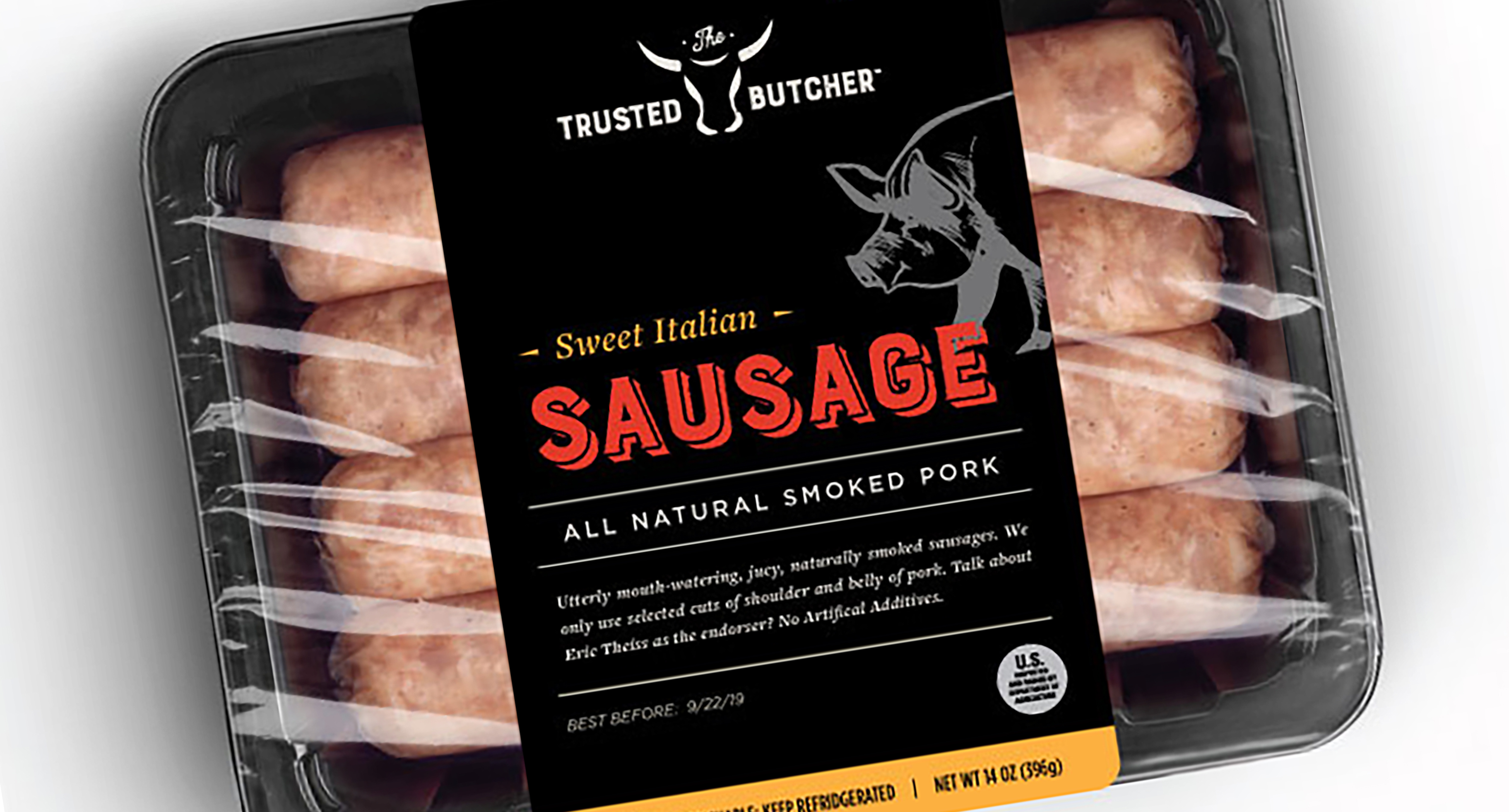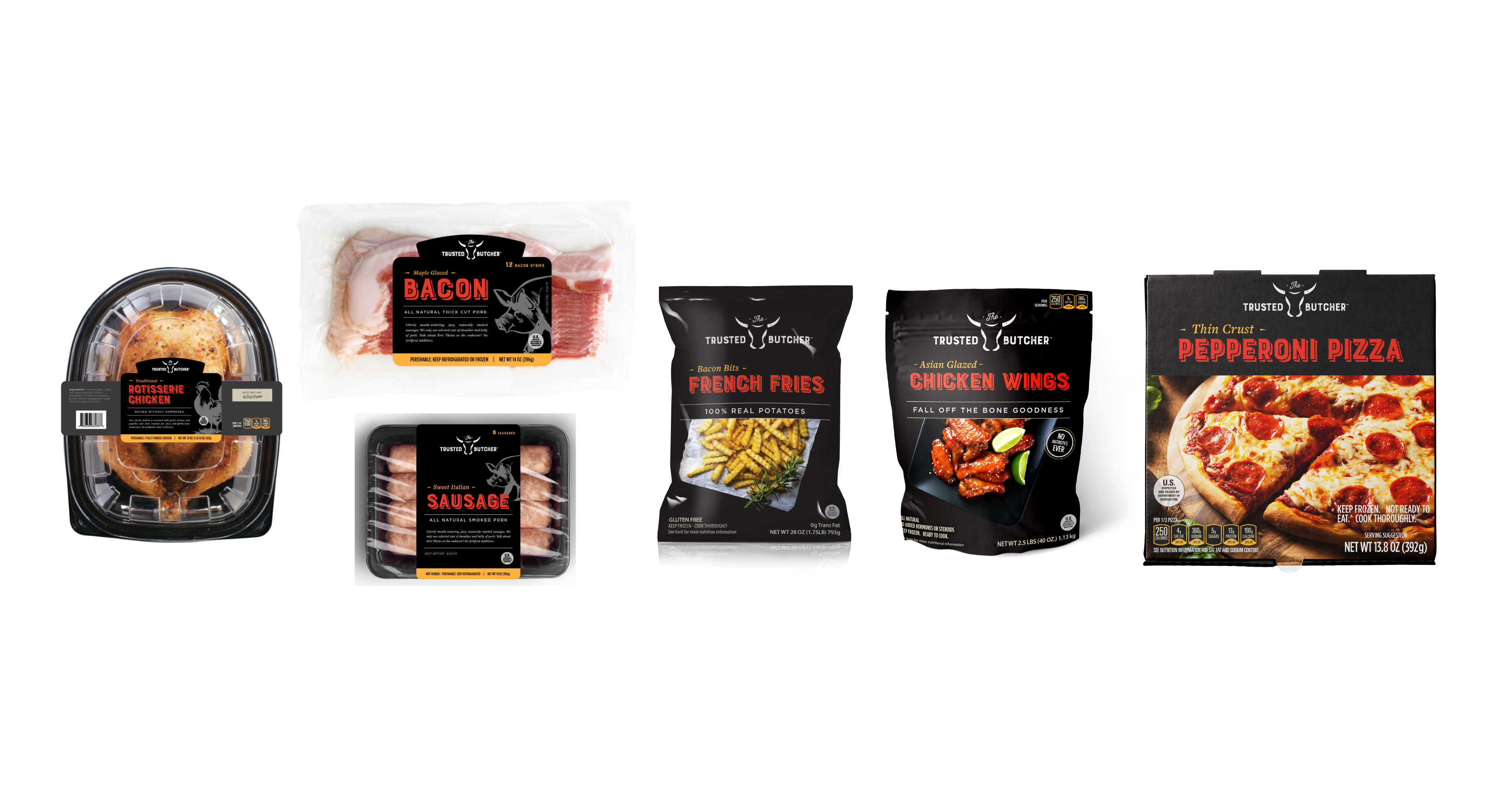This cross-merchandising effort provided a unique opportunity to test our products in two competing markets. The Trusted Butcher knives were marketed on DRTV and upon purchase, customers received an in-store promotion to Trusted Butcher meals. The retail concept packaging highly emphasized sharp food imagery and bold typography for impactful attention-grabbing shelf labels.