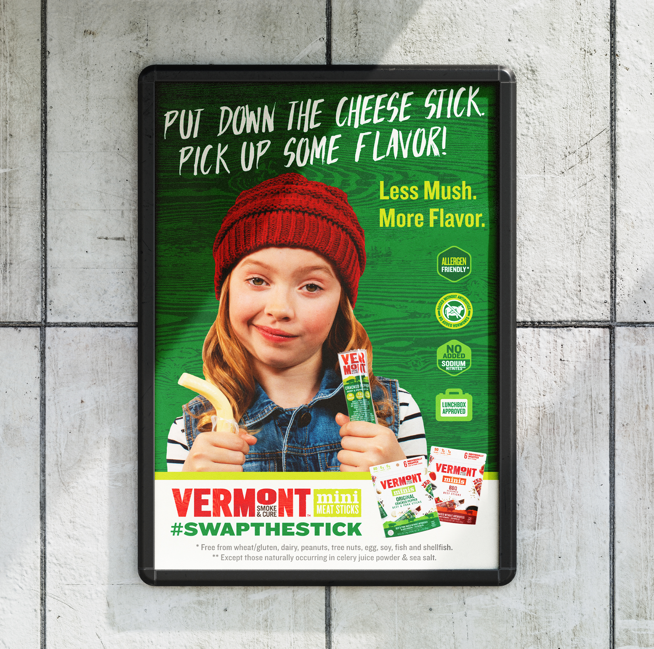 To persuade families (specifically moms) to switch from buying their kids the typical lunch snacks to a healthier alternative, Vermont Smoke & Cure mini meat sticks.